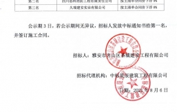 成雅新城人才公寓項目電梯設備采購及安裝招采,根據工程招標投標文件的有關法律、法規、規章的規定,經雅安市名山區茶城建設工程有限公司競爭性談判比選流程,比選工作已經結束,中選人已經確定,現將中選結果公示如下:中選單位名稱:四川通用電梯有限公司中選價:970000元(大寫:人民幣玖拾柒萬元整)施工時間:待甲方通知中選質量要求:合格項目現場負責人:劉夢月自中選結果公示之日起一個工作日內,對中選結果無異議的,采購人將簽發中選通知書,并在五個工作日內簽訂合同。雅安市名山區茶城建設工程有限公司2021年7月5日...