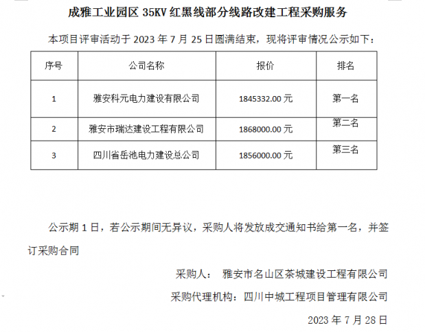 成雅工業園區35KV紅黑線部分線路改建工程采購服務